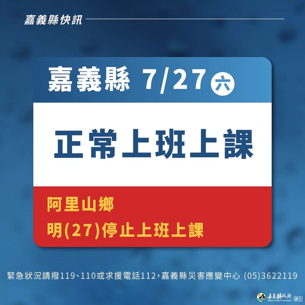 因應凱米颱風嘉義縣阿里山鄉7/27(六)停班停課,本處里佳資訊站閉館
