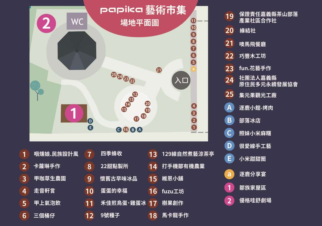 交通部觀光署阿里山國家風景區管理處(以下簡稱阿里山管理處)今年於8月24日(星期六)、8月25(星期日)首次辦理「2024 papika藝術市集」活動,papika為鄒語為拍手喝采的意思,此次活動不但結合阿里山鄒族文化的美食享宴,更將鄒族逐鹿文創園區精心打造成輕鬆愜意的原民藝文空間,並以「藝術生活、在地文創、友善農作、創意美食」四大元素作為papika藝術市集招募主題,邀請全國25家品牌店家共同參與迎客,絕對是大小朋友們在暑假期間不容錯過的鄒文化藝術饗宴。