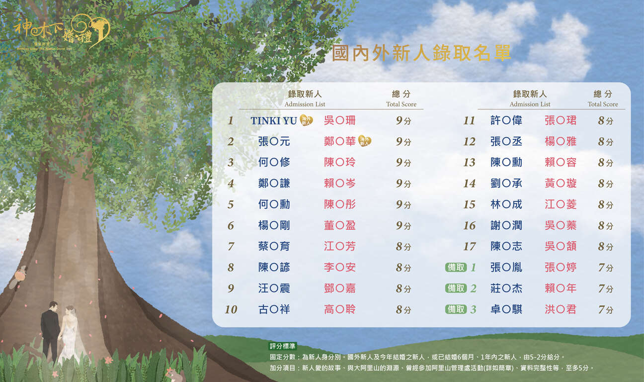 2024神木下婚禮國內外新人錄取名單出爐囉!