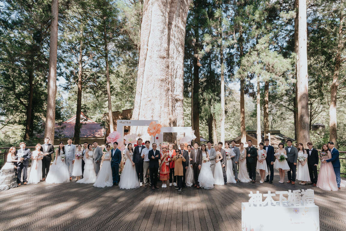 邁入第18屆的神木下婚禮,承襲「香林神木證婚」、「鄒族部落婚禮體驗」兩大特色儀式,今年更加入鄒服體驗日,新人們穿著鄒服體驗轄區內二大原民部落『鄒族逐鹿文創園區』與『優遊吧斯鄒族文化部落』原汁原味的部落文化與鄒族特有的儀式,體會真實婚姻同甘共苦又緊密相依的夫妻情深,晚上則入住全台海拔最高國際連鎖酒店「阿里山英迪格酒店」,為隔日的婚禮儲備幸福的能量。今日新人們在阿里山香林神木平台,在神木的見證與祝福下,互許真愛諾言、締結婚約,走向人生嶄新階段。除了獨有的證婚儀式外,阿里山管理處更邀約上百位新人家屬一同於阿里山賓館共享午宴,為一連串浪漫婚禮及遊程畫下圓滿的句點。
