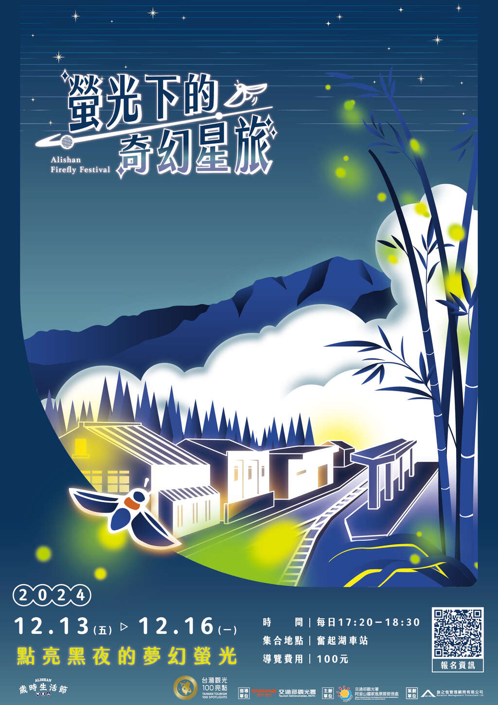 交通部觀光署阿里山國家風景區管理處(以下簡稱阿管處)為強化推廣阿里山的生態環境保育,並將稀有且獨特的冬螢介紹給大家認識,特別於113年12月13日(星期五)至16日(星期一)舉辦為期四天的賞冬螢暨生態導覽活動,以「2024螢光下的奇幻星旅-點亮黑夜的夢幻螢光」為主題,在今年入選為台灣觀光100亮點的奮起湖地區,經由在地資深導覽老師的解說,引領大家進入奮起湖林間尋找黑夜的提燈者、探索冬季獨有鋸角雪螢、神木螢的舞姿,感受奮起湖不同於白天的靜謐之美。