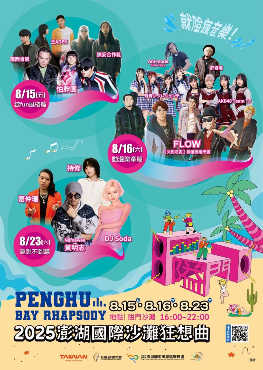 澎湖國家風景區管理處訂於114年8月8日至9日、15日至16日及23日於澎湖隘門沙灘舉辦「2025澎湖國際沙灘狂想曲」活動。