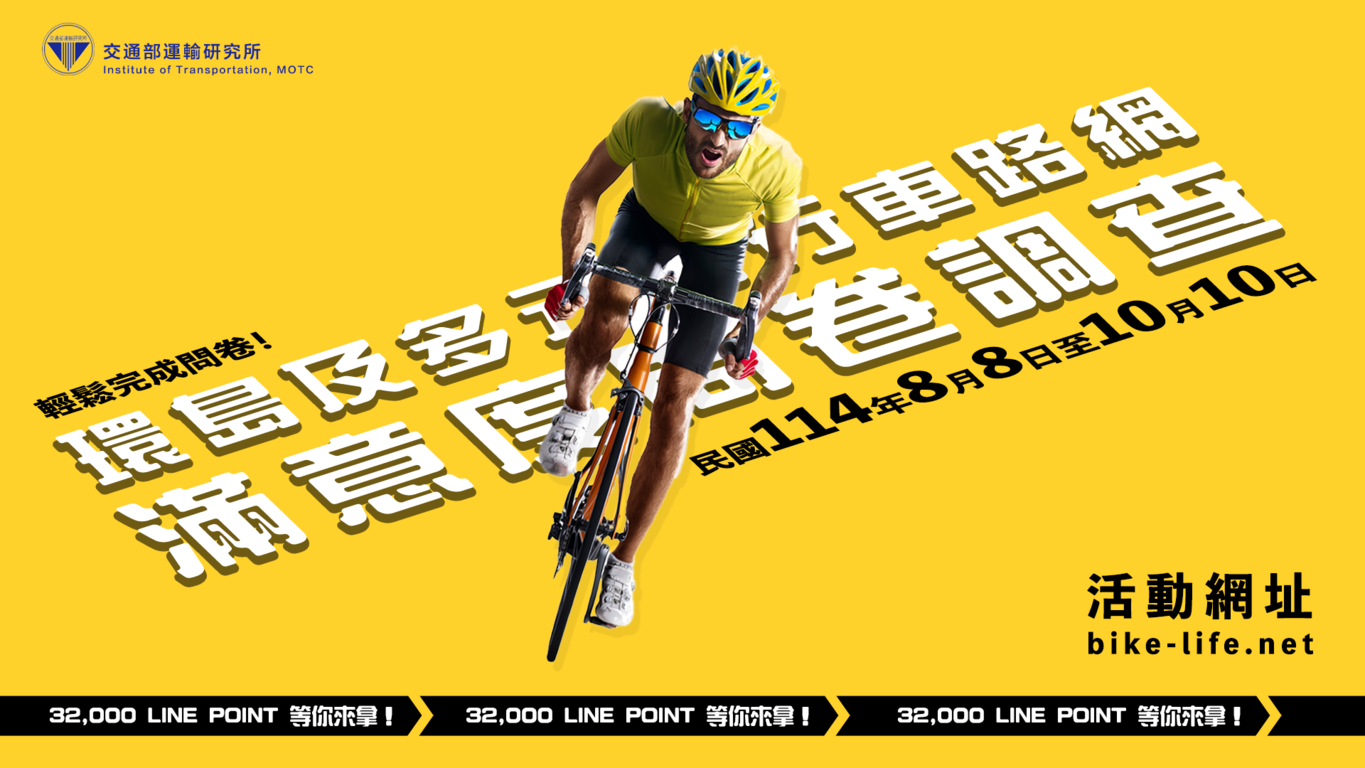 訊息內容交通部運輸研究所為擴大蒐集自行車友之意見,於114年配合「自行車路網整併暨第二條環島路線規劃」成果,就保留之編號路線辦理「環島及多元自行車路網滿意度問卷」調查。相關連結 問卷網址 相關照片 上一則 回列表 下一則