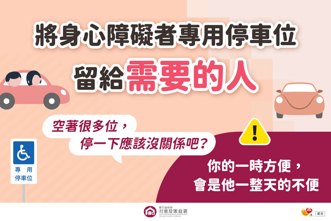 衛福部-宣導民眾正確使用身心障礙者專用停車位