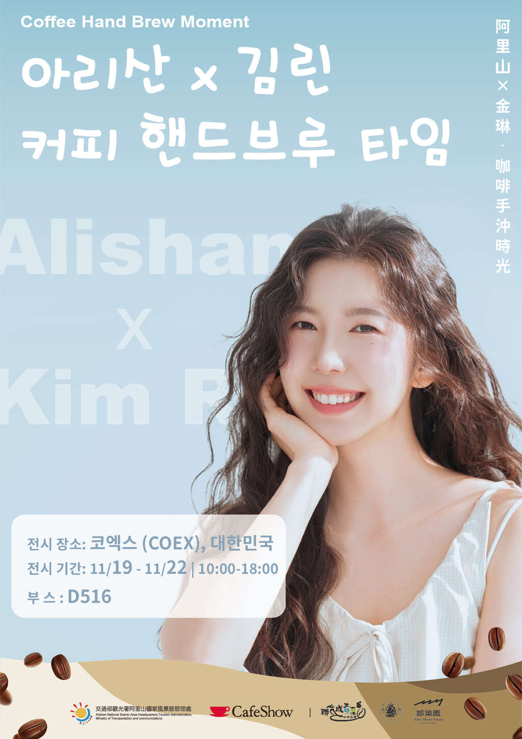 展會期間,阿里山咖啡業者帶來榮獲2025 Coffee Review 94分以上的阿里山精品咖啡,並將與來自韓國的人氣音樂創作人金琳(Kim Rin)在現場進行手沖咖啡展演與試飲活動,讓韓國民眾親自體驗阿里山咖啡的香醇風味,享受從山林到咖啡杯的完整旅程。