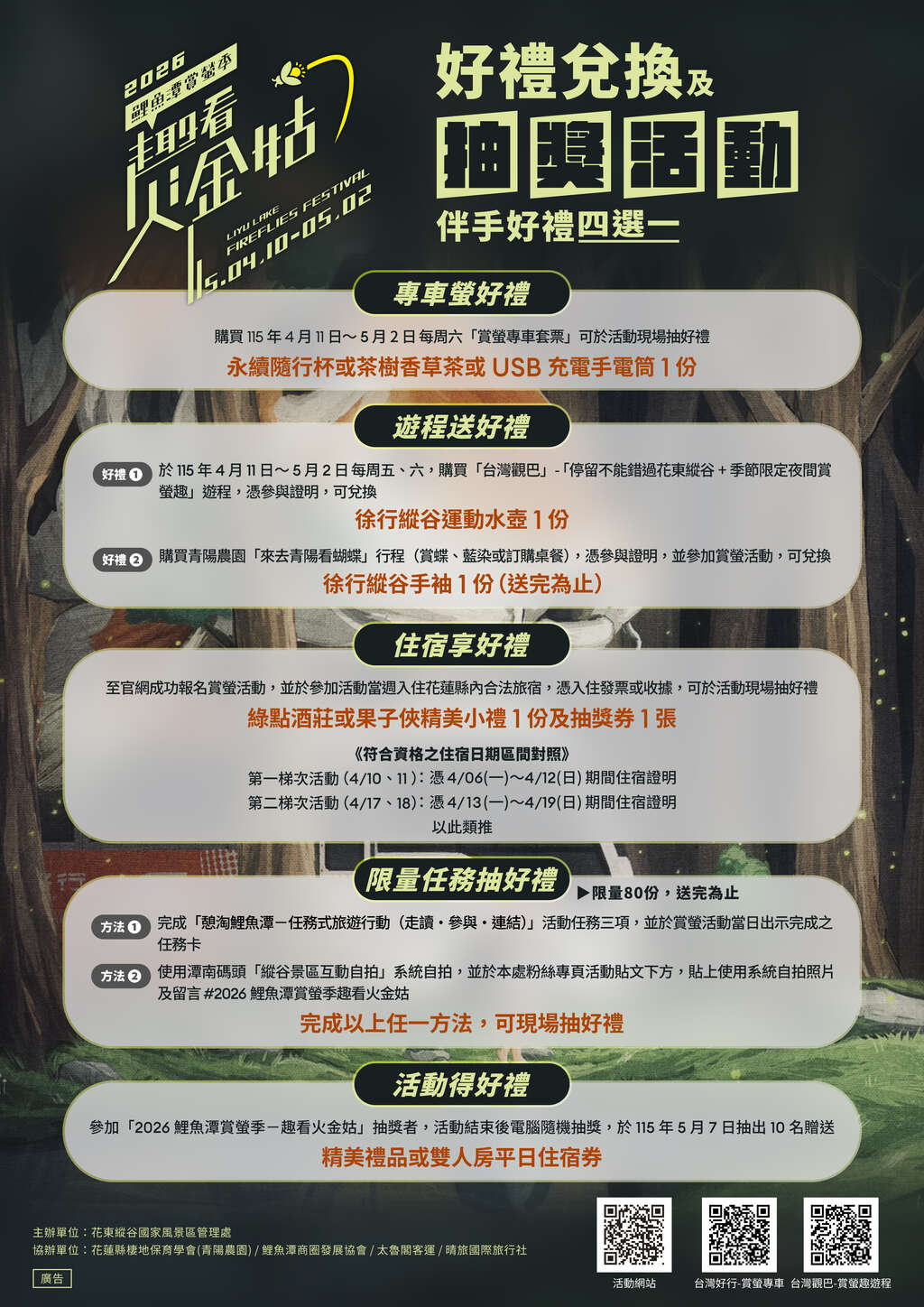 花東縱谷國家風景區管理處-「2026年鯉魚潭賞螢季-趣看火金姑」