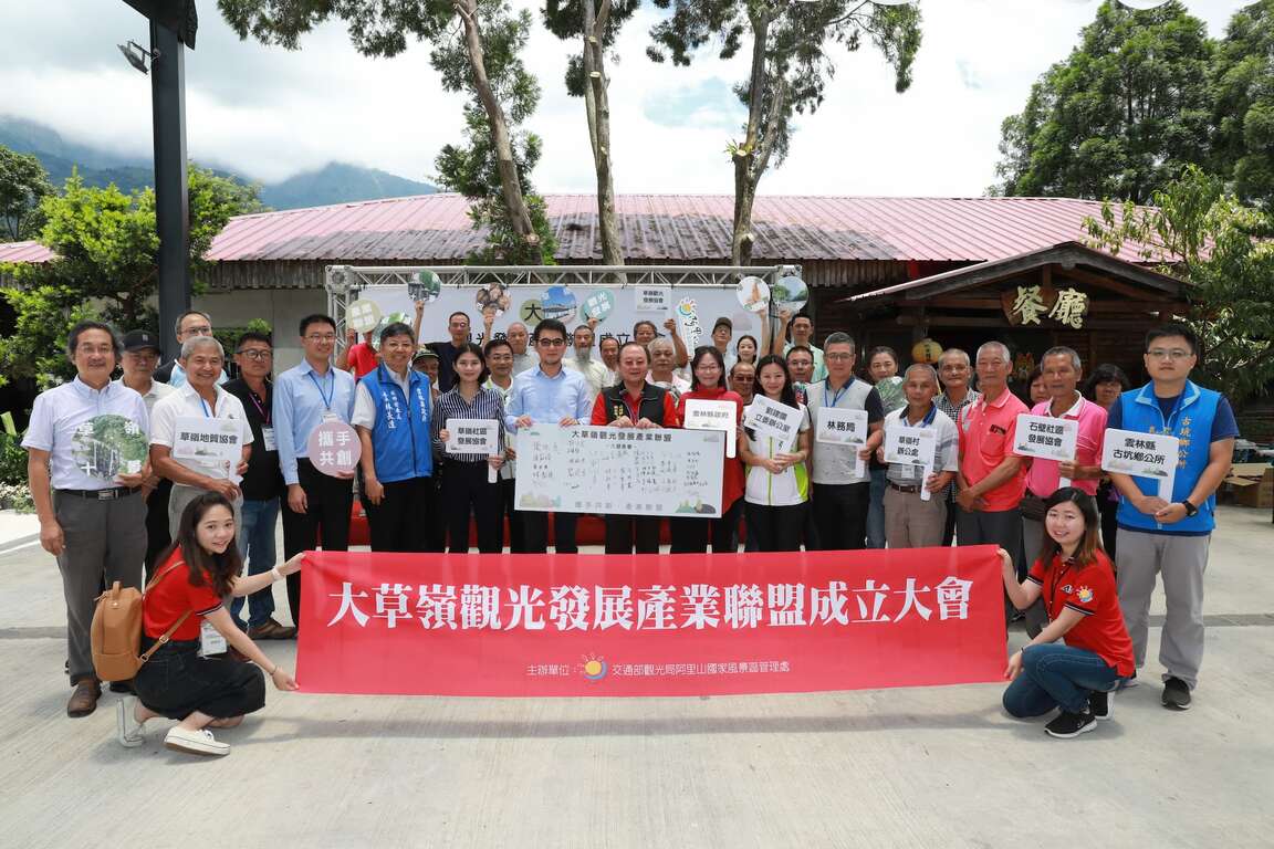 交通部觀光局阿里山國家風景區管理處(以下簡稱阿里山管理處)推動成立的「大草嶺區域觀光發展產業聯盟」,今(29日)於草嶺神農大飯店舉辦成立大會,阿里山管理處處長馬惠達與草嶺地區聯盟成員進行簽署儀式,以展現大草嶺觀光產業與阿里山管理處共同推動優質觀光的決心;本次大會共有立法院劉建國委員、雲林縣政府謝淑亞副縣長、行政院農業委員會林務局嘉義林區管理處蔡忠誠主任、雲林縣議會張庭綺議員、雲林縣古坑鄉公所農經課張育睿課長、雲林縣古坑鄉農會張淑麗主任、在地各觀光產業協會組織領袖及從業人員一起共襄盛舉。